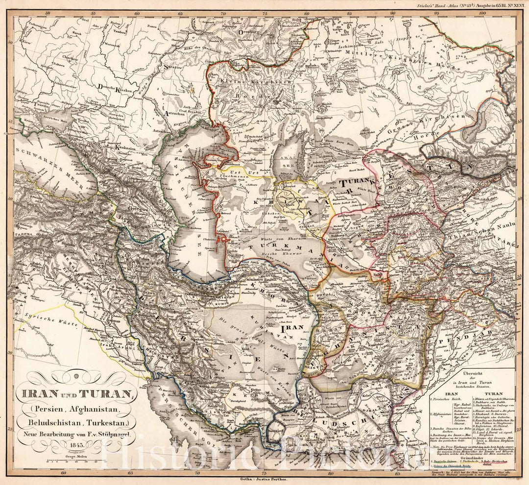 Historic Map : Afghanistan, 1851 Iran und Turan (Kazakhstan), Persien (Persia), Afghanistan, Beludschistan, Turkestan. , Vintage Wall Art