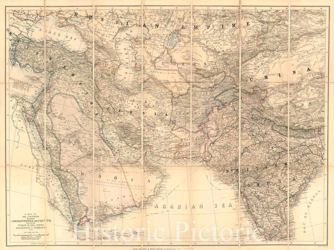 Historic 1885 Map - A map of The Countries Between Constantinople and Calcutta : Including Turkey in Asia, Persia, Afghanistan & Turkestan.
