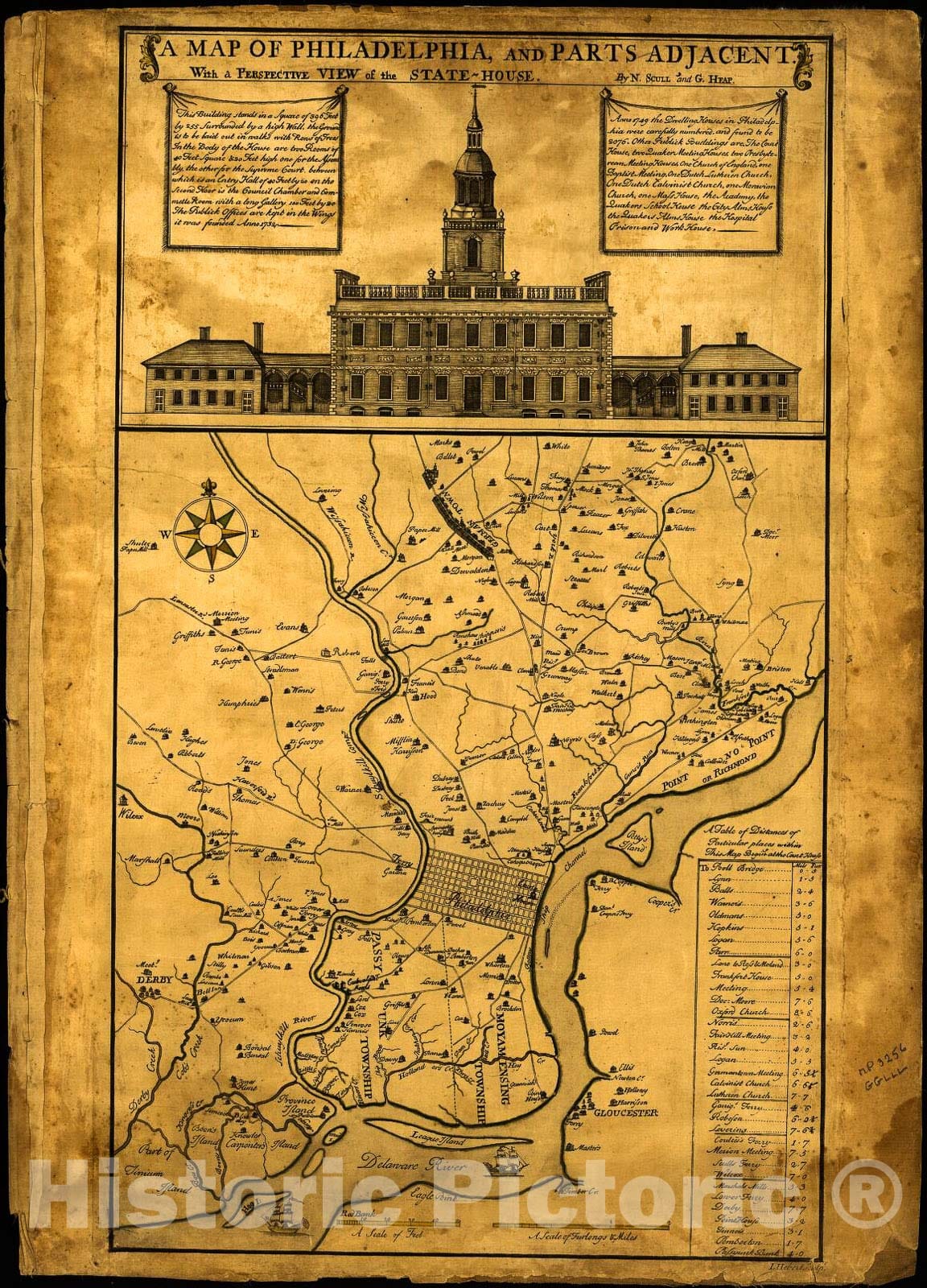 Historic 1752 Map - A map of Philadelphia and Parts Adjacent : with a Perspective View of The State-House
