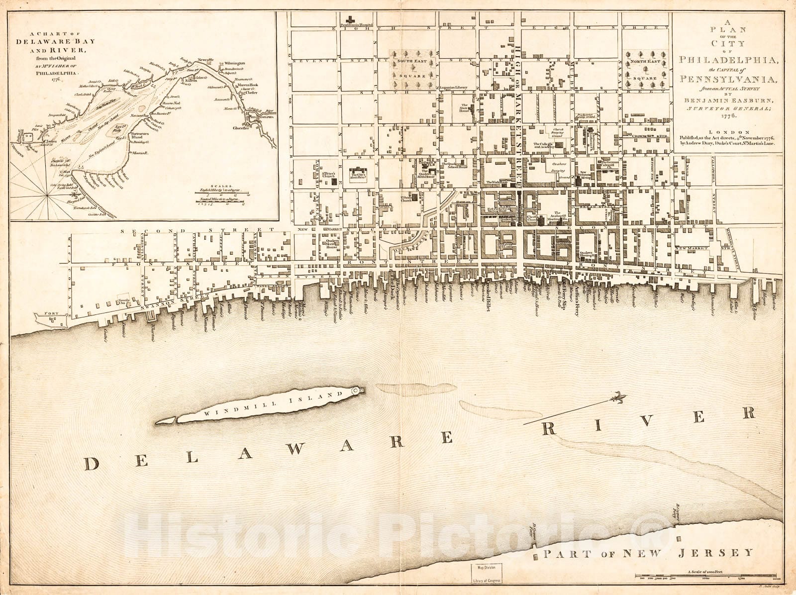 Historic 1776 Map - A Plan of The City of Philadelphia, The Capital of Pennsylvania, from an Actual Survey.