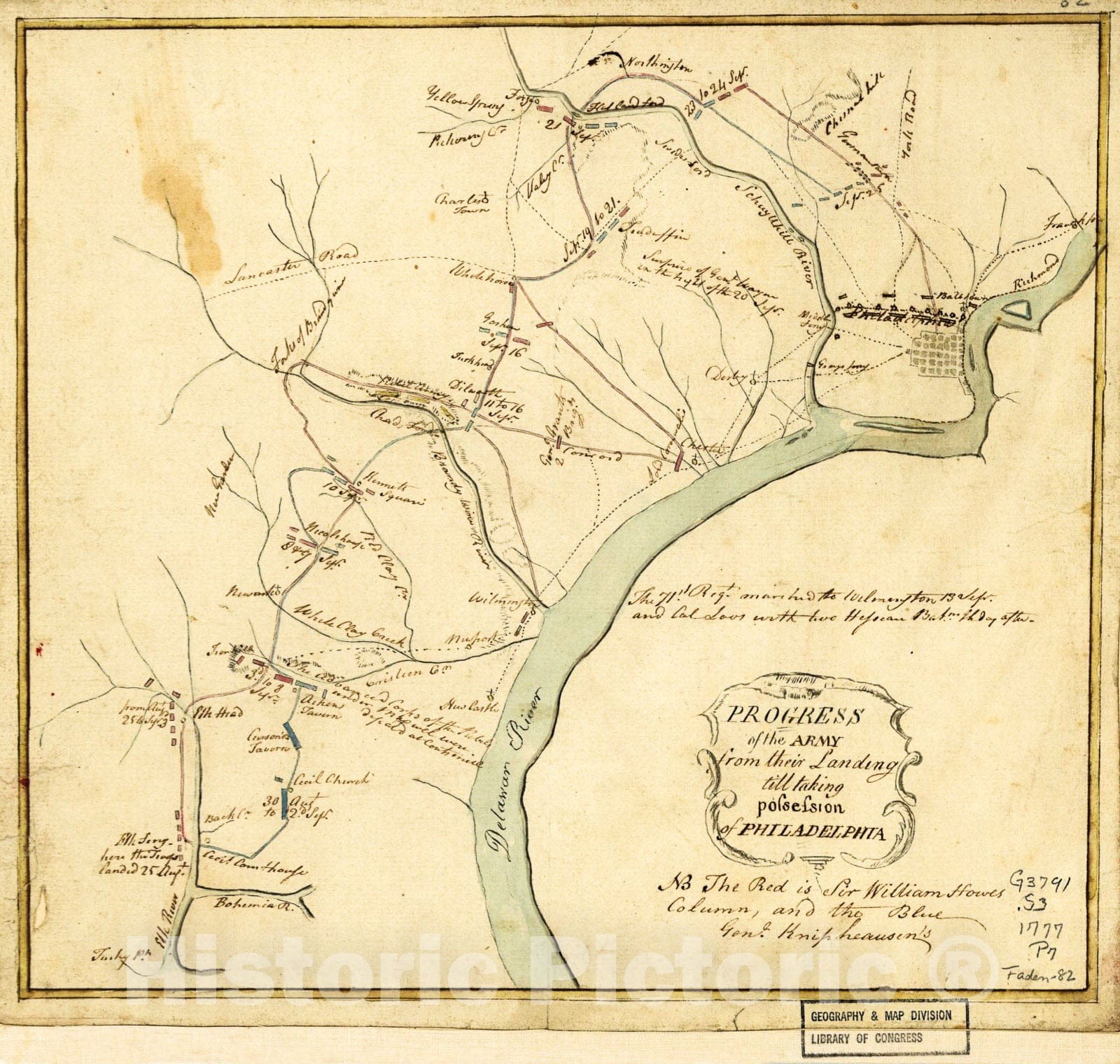 Historic 1777 Map - Progress of The Army from Their Landing Till Taking Possession of Philadelphia.