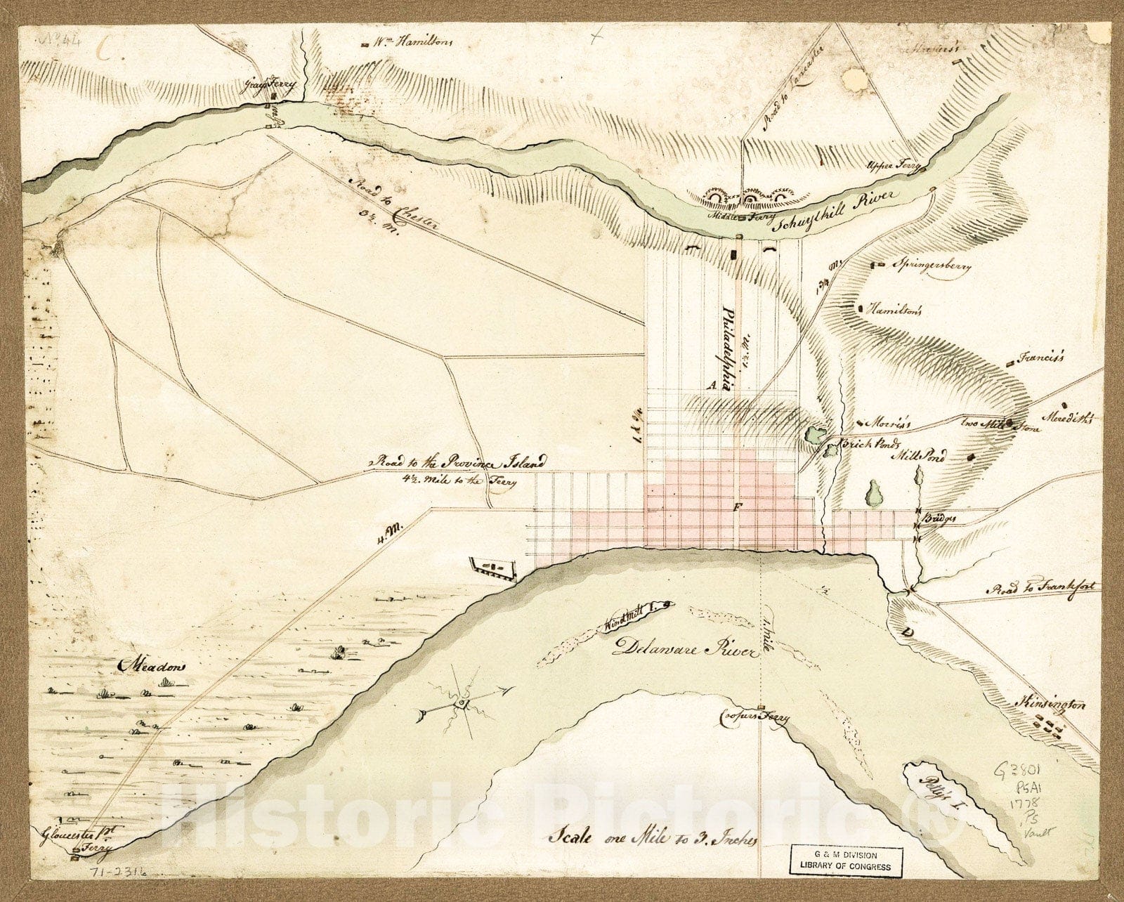 Historic 1778 Map - Philadelphia and Vicinity. Military.