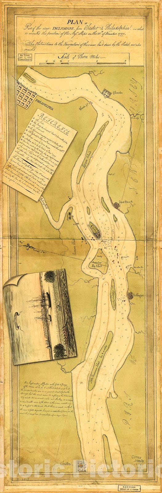 Historic 1778 Map - Plan of Part of The River Delaware from Chester to Philadelphia, in which is mark'd The Position of His Majs. Ships on The 15th. of November 1777