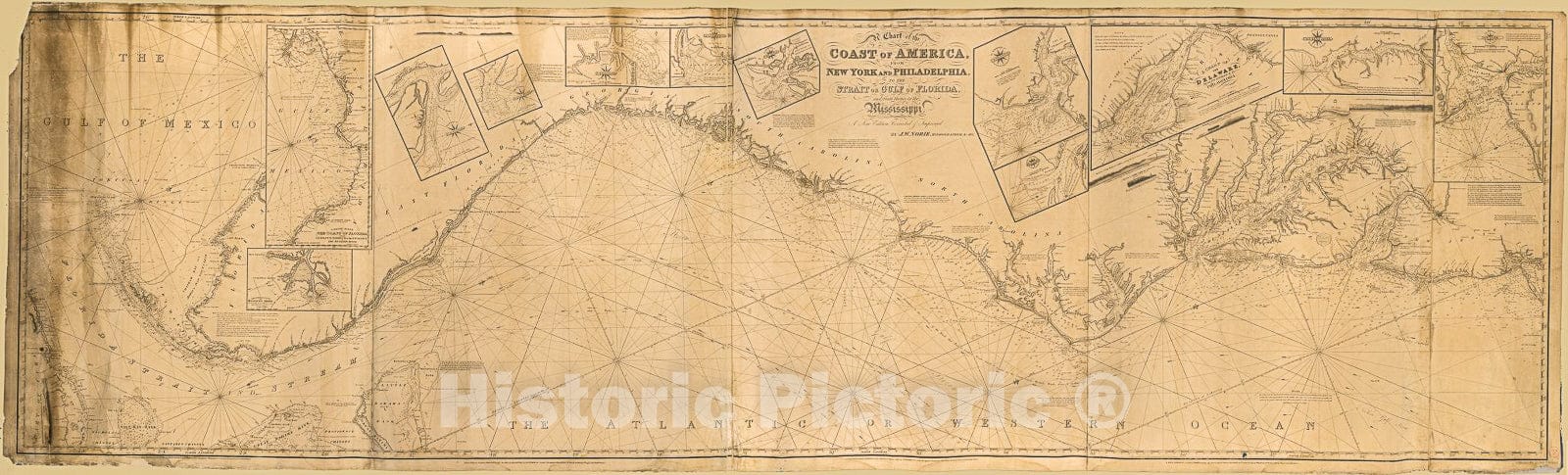 Historic 1837 Map - A Chart of The Coast of America : from New York and Philadelphia to The Strait or Gulf of Florida, and from thence to The Mississippi