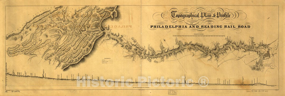 Historic 1838 Map - Topographical Plan & Profile of The Philadelphia and Reading Rail Road. J. Knight. Sc.