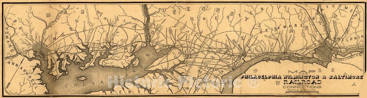 Historic 1850 Map - Map of The Philadelphia, Wilmington, Baltimore Railroad shewing sic its Connections.