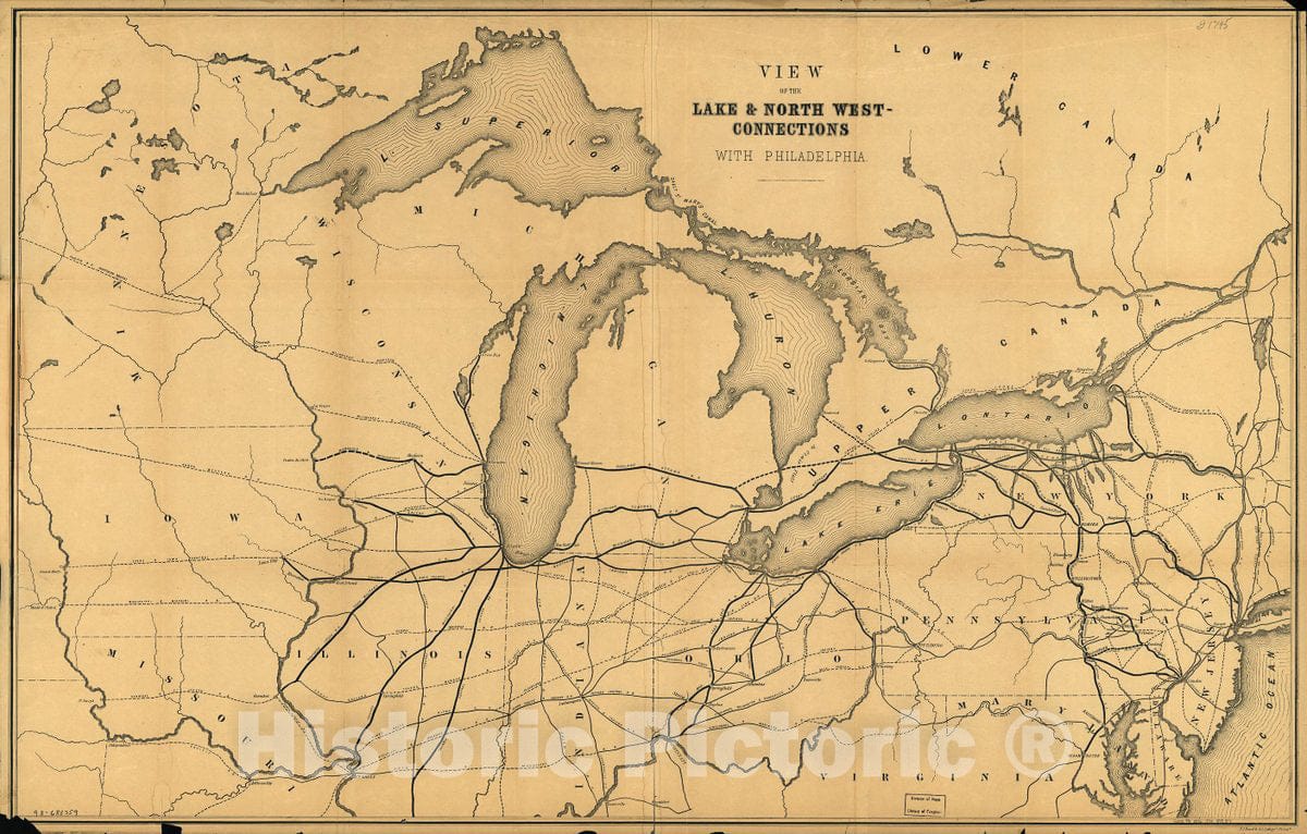 Historic 1856 Map - View fo The Lake & North west-Connections with Philadelphia.