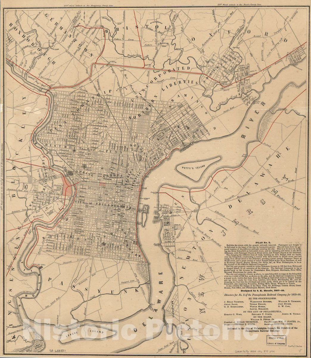 Historic 1858 Map - Dedicated to The City of Philadelphia Through The Directors of The Pennsylvania Railroad Company; Plan no. 2. exhibits The Streets with The Present Railroads Removed