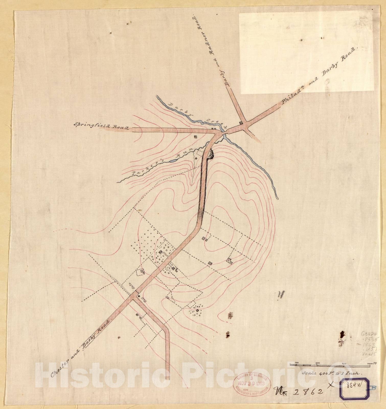 Historic 1863 Map - General Diagram : Western Philadelphia City and Adjacent portions of Delaware and Montgomery Counties, Pennsylvania. - Paschall Subdivision - tracing 1