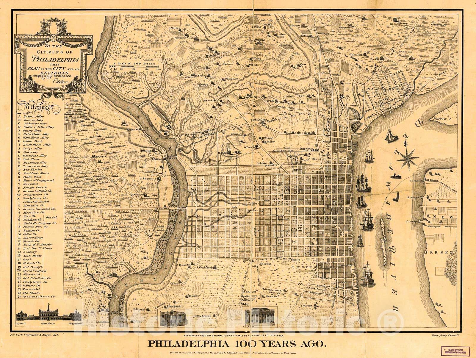 Historic 1875 Map - Philadelphia 100 Years ago.