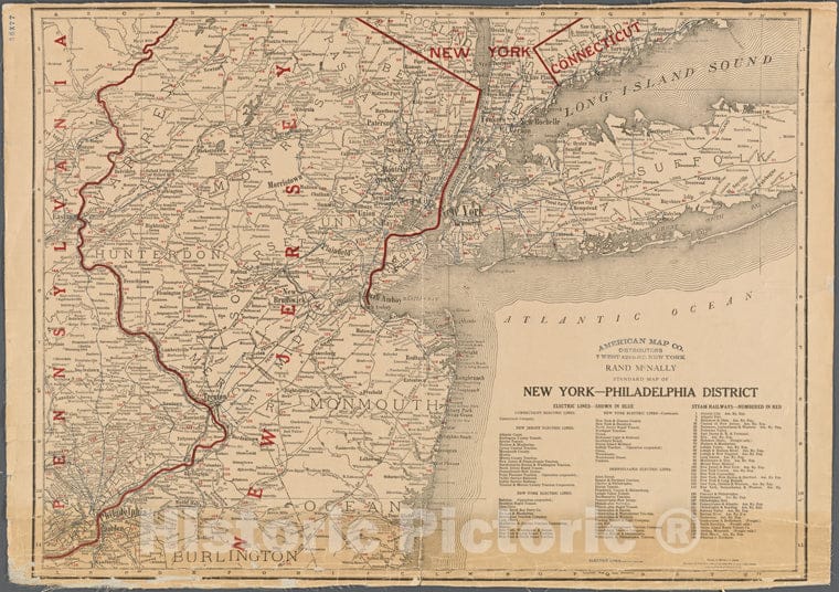Historic 1904 Map - Standard Map Of The New York - Philadelphia District.Of New York City And State - New York City & Vicinity