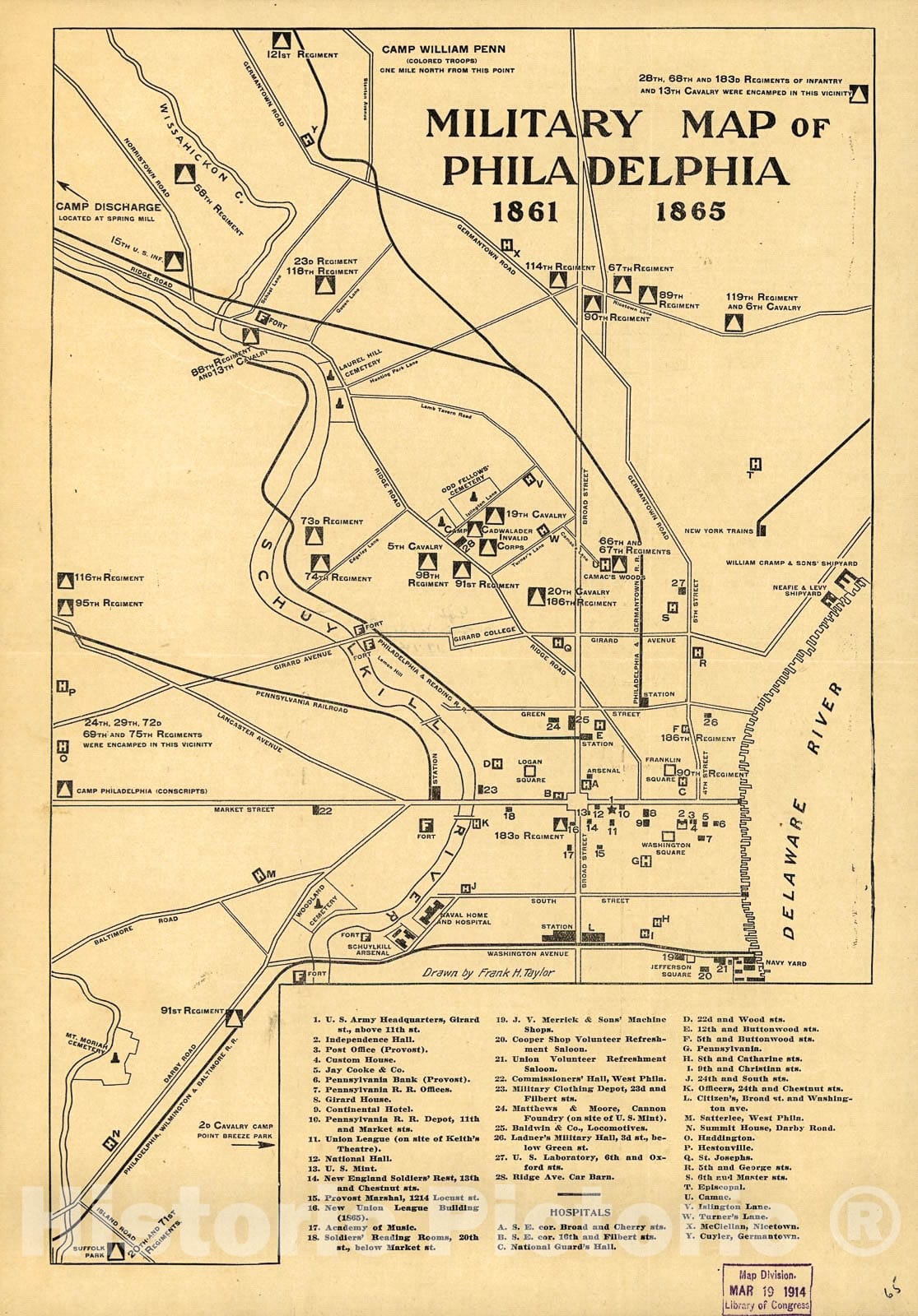 Historic 1914 Map - Military map of Philadelphia 1861-1865