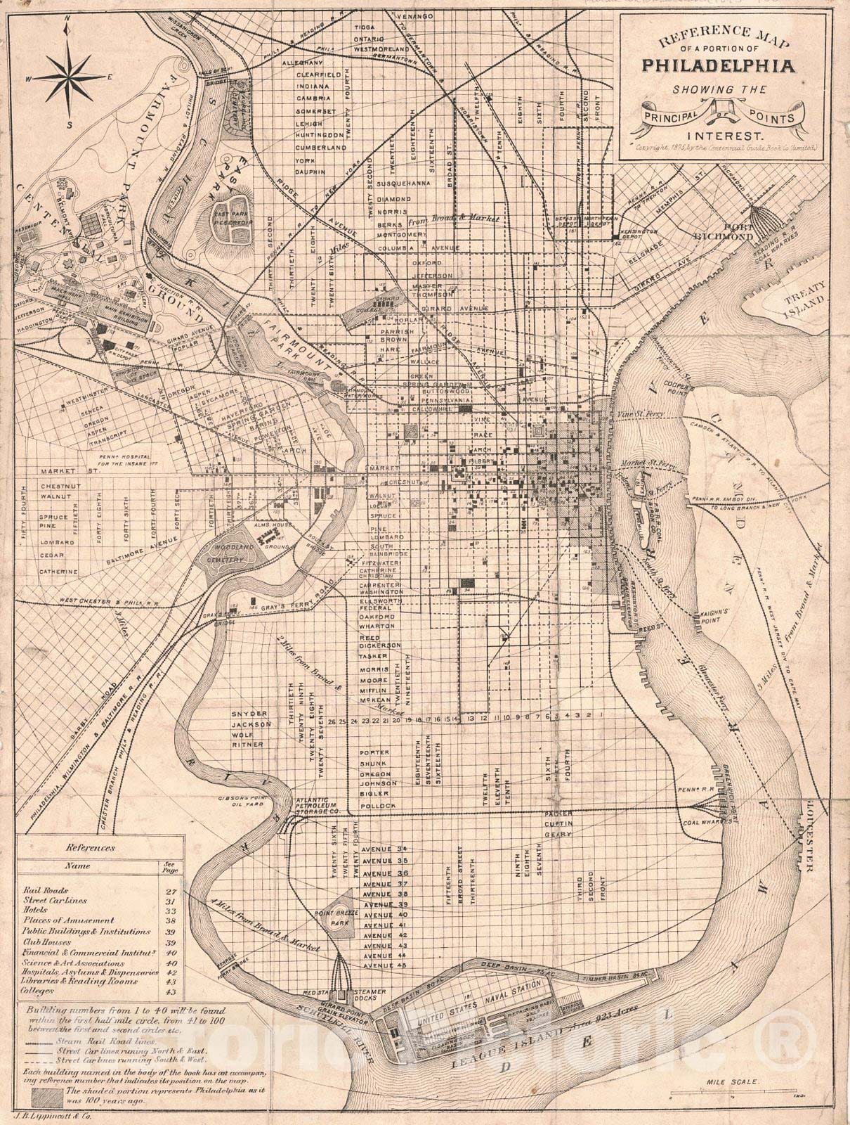 Historic Map : 1875 Reference Map of a Portion of Philadelphia Showing Principal Points of Interest : Vintage Wall Art