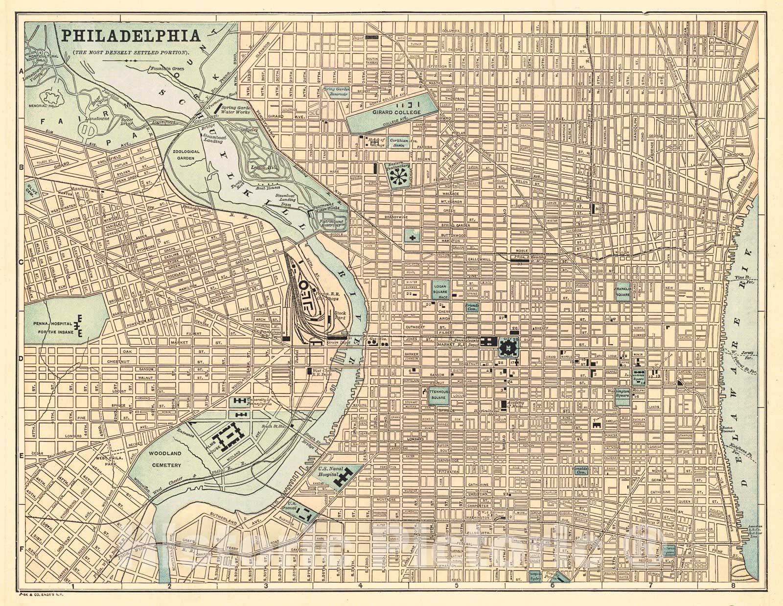 Vintage Map | 1892 Philadelphia (The Most Densely Settled Portion) | Fisk & Company