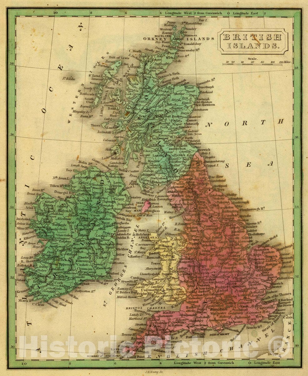 Historic Map : British Islands. J.H. Young Sc. (Philadelphia: John Grigg, No. 9 North Fourth Street. 1830), 1830 Atlas - Vintage Wall Art