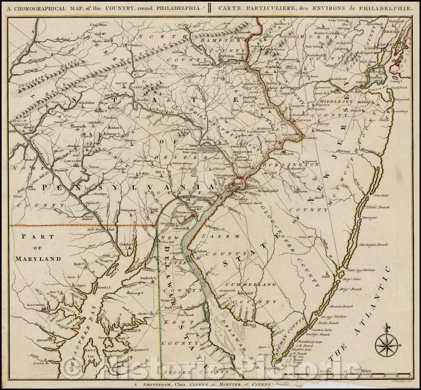 A Chorographical Map, of the Country, round Philadelphia / Carte Particuliere, des Environs de Philadelphie, 1778, Covens & Mortier