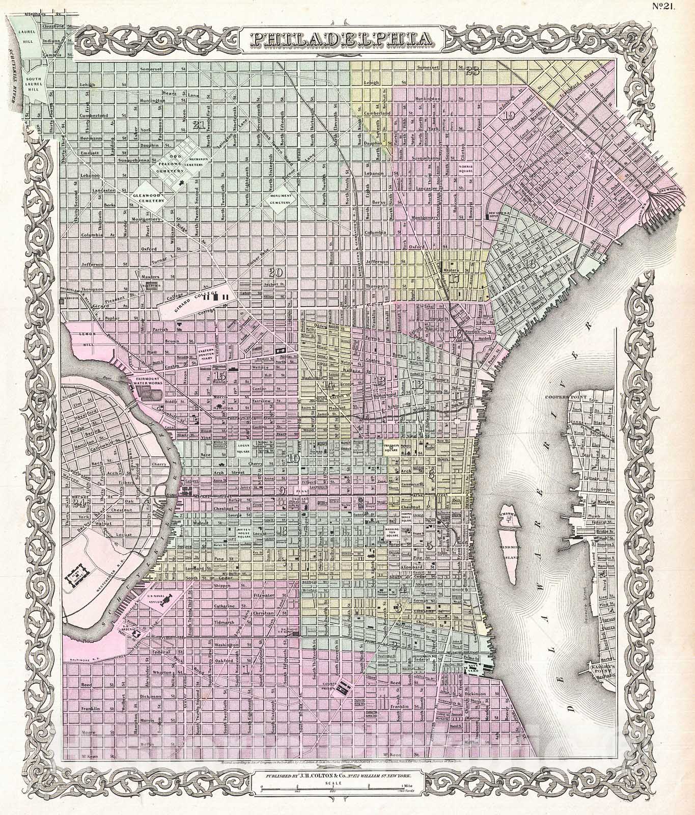 Historic Map : Colton Plan or Map of Philadelphia, Pennsylvania , 1855, Vintage Wall Art