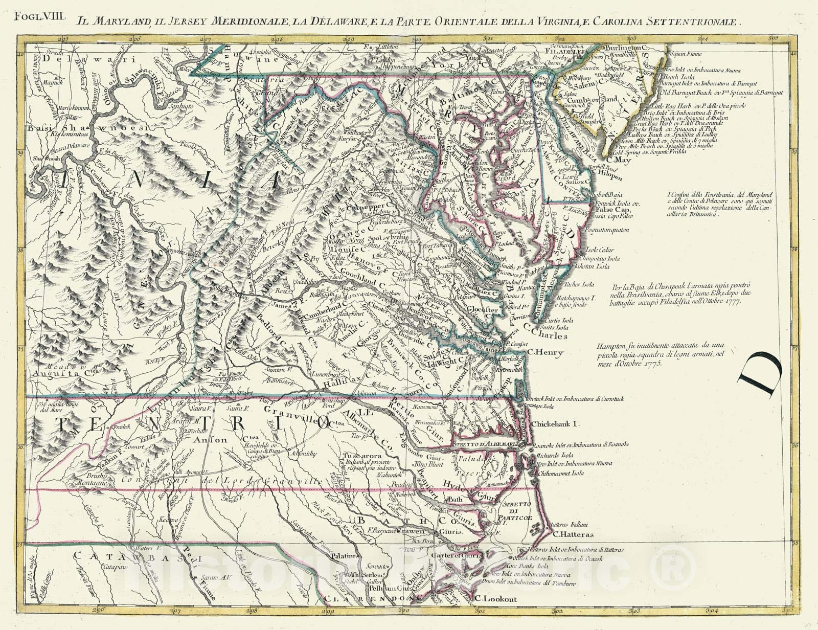 Il Maryland, Il Jersey Meridionale, la Delaware / Map of Southern British Colonies, Philadelphia ,Delaware Bay, 1778, Antonio Zatta