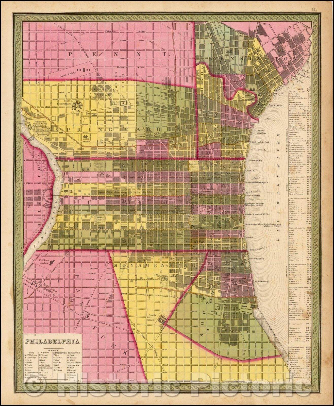 Historic Map - Philadelphia, 1847, Samuel Augustus Mitchell - Vintage Wall Art
