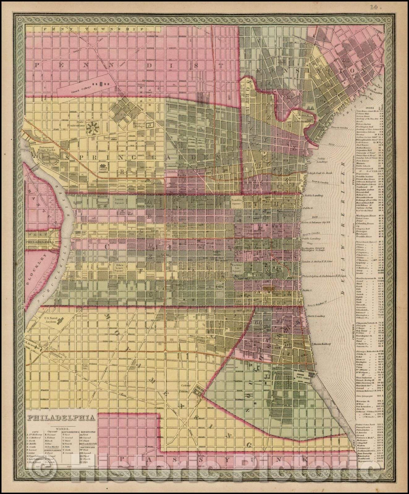 Historic Map - Philadelphia, 1849, Samuel Augustus Mitchell - Vintage Wall Art