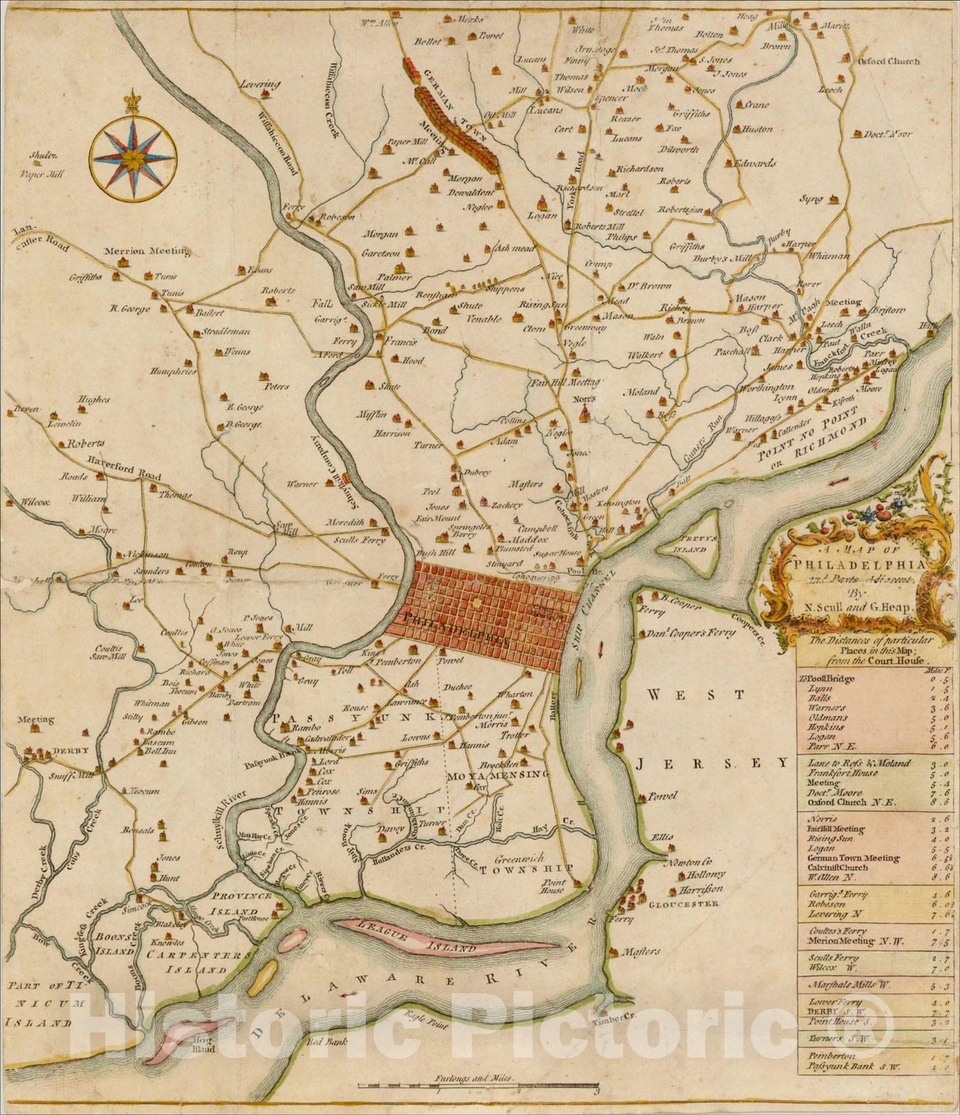A Map of Philadelphia and Parts Adjacent, 1753, Nicholas Scull
