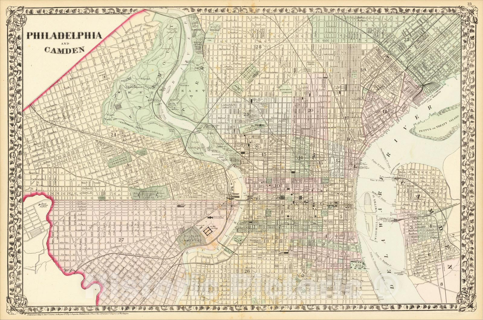 Historic Map : Plan of the City of Philadelphia and Camden, 1872, Samuel Augustus Mitchell Jr., Vintage Wall Art