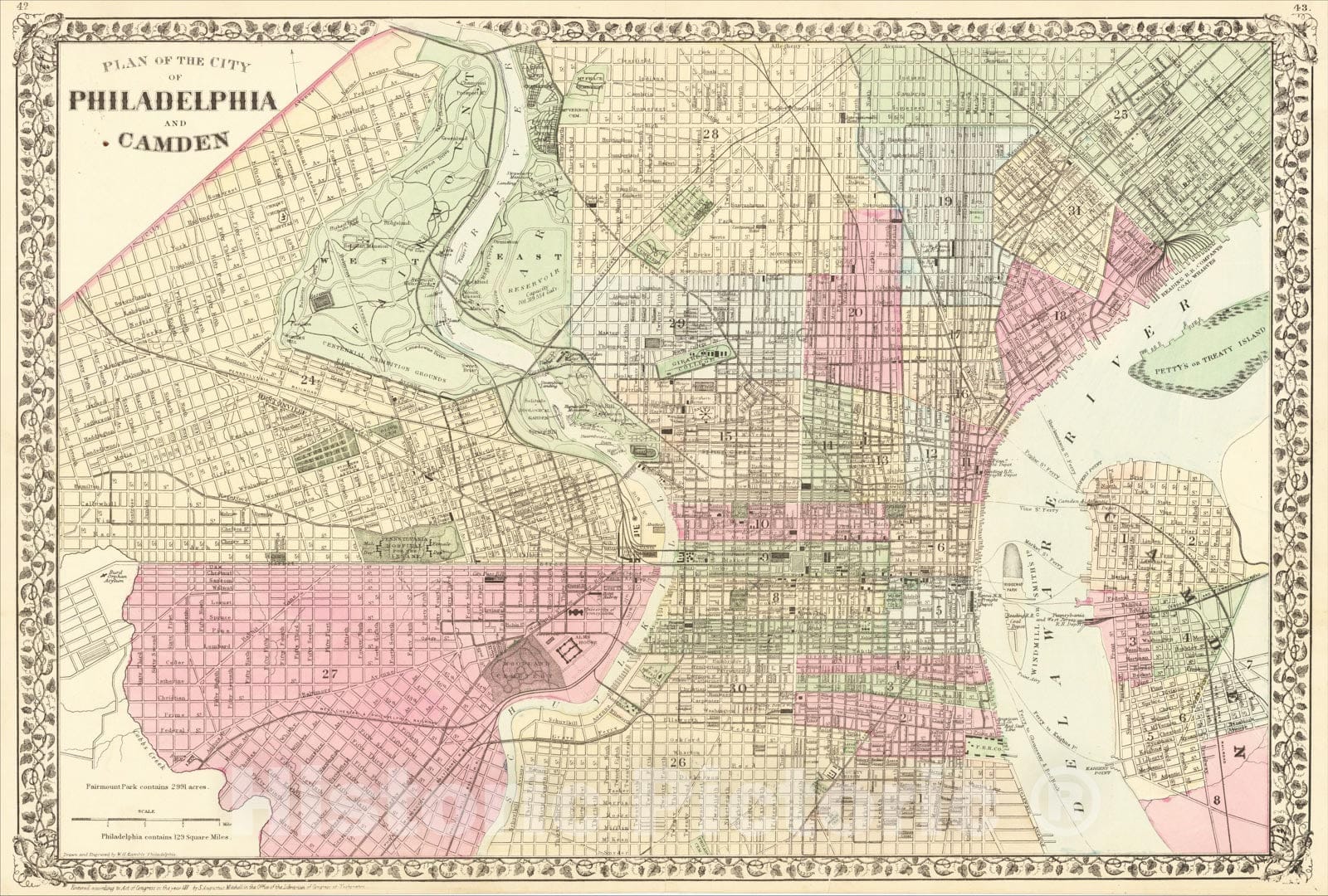 Historic Map : Plan of the City of Philadelphia and Camden, 1882, Samuel Augustus Mitchell Jr., Vintage Wall Art