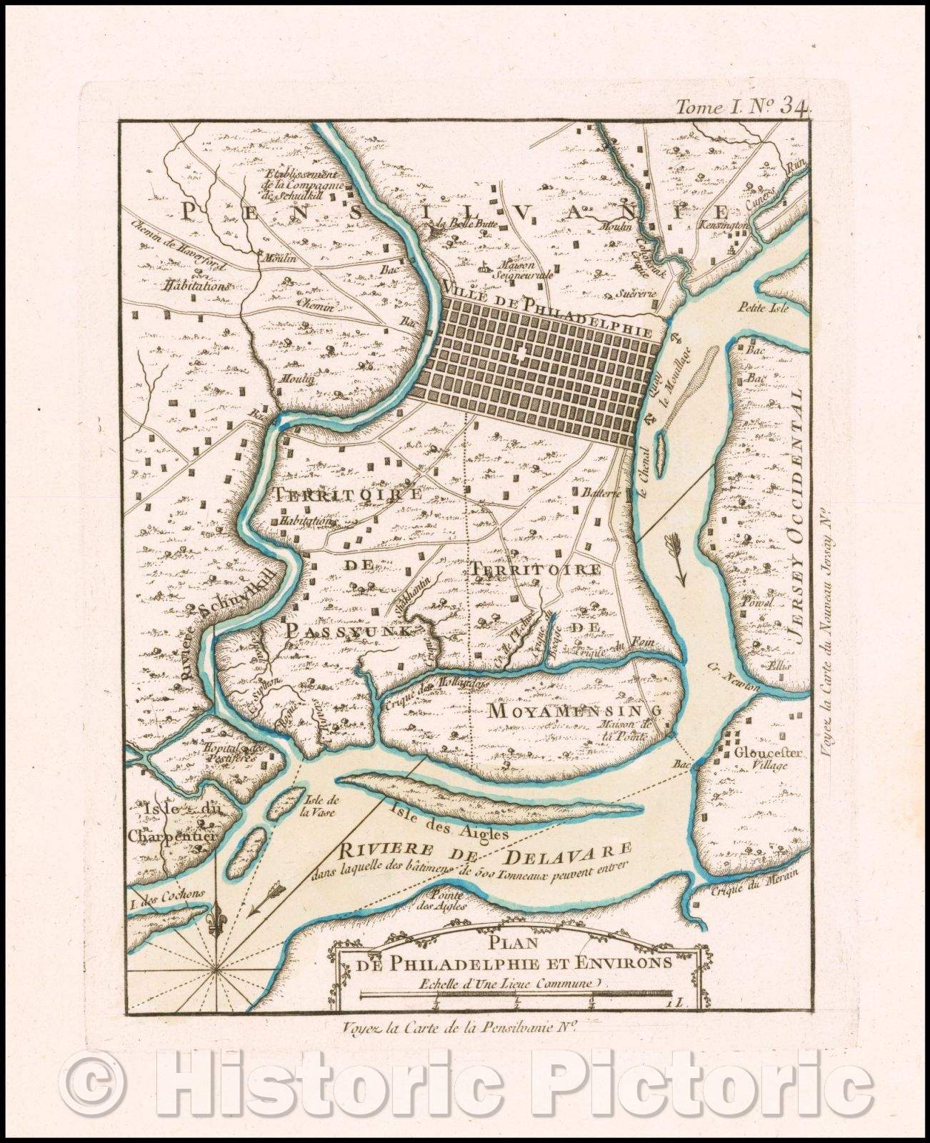Historic Map - Plan de Philadelphie et Environs/Map of Philadelphia and Vicinity, 1764, Jacques Nicolas Bellin - Vintage Wall Art