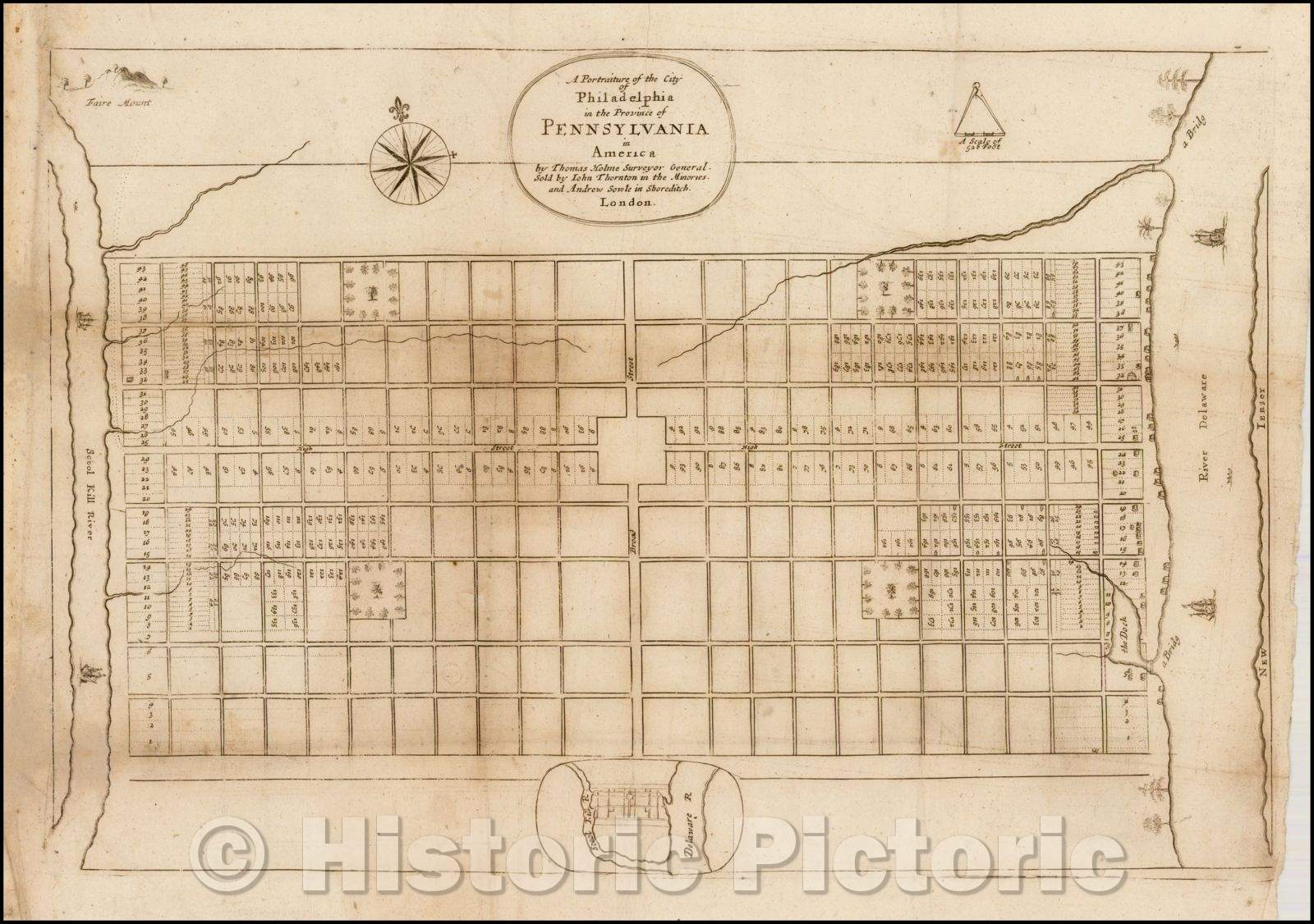 Historic Map - A Portraiture of the City of Philadelphia in the Province of Pennsylvania in America, 1683, Thomas Holme - Vintage Wall Art