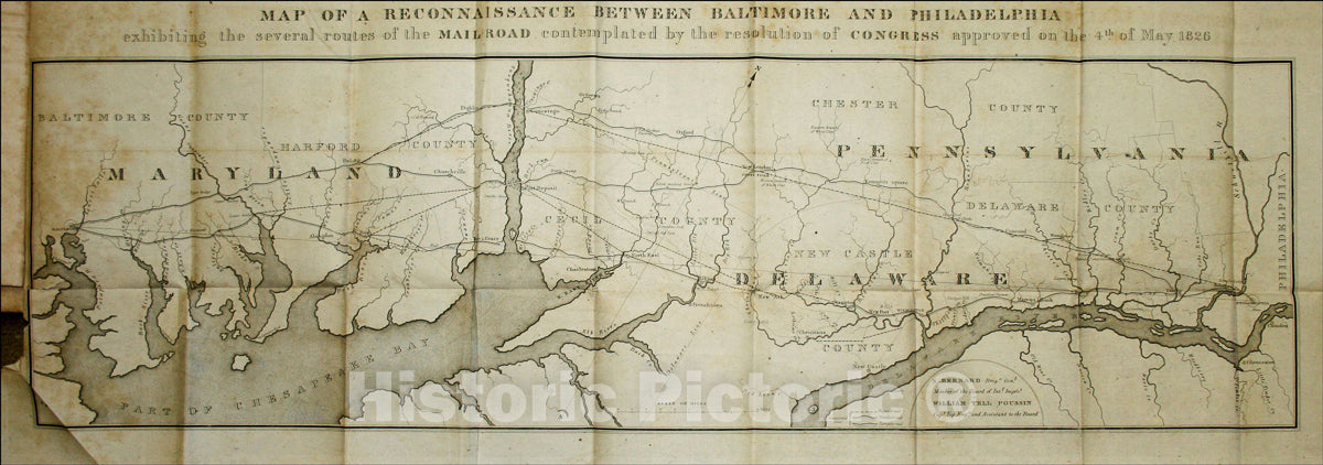 Historic Map : Map of a Reconnaissance between Baltimore and Philadelphia, 1827, U.S. Government, Vintage Wall Art