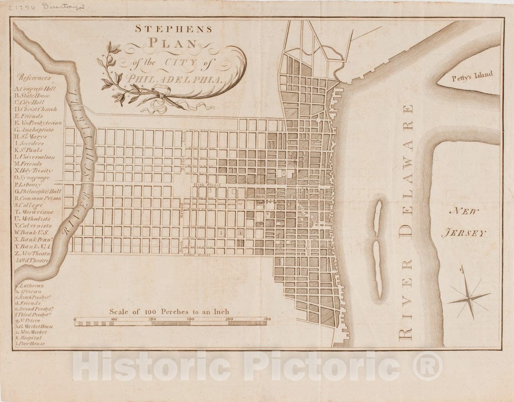 Historical Map, 1796 Stephens Plan of The City of Philadelphia, Vintage Wall Art