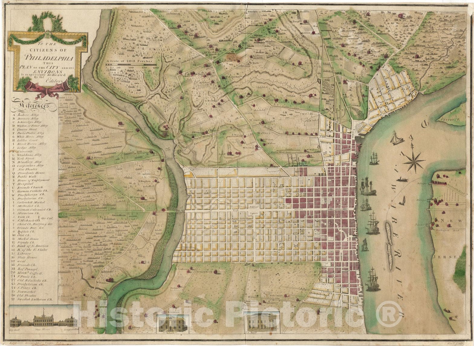 Historical Map, 1796 To the citizens of Philadelphia this Plan of the city and its environs : is respectfully dedicated by the editors, Vintage Wall Art