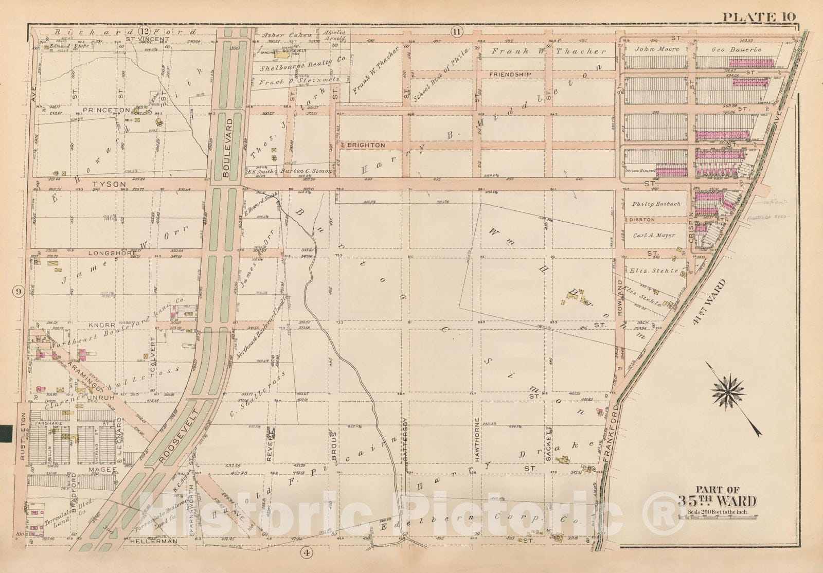 • .Historic Map : Atlas City of Philadelphia 35th Ward, Philadelphia 1927 Plate 010 , Vintage Wall Art