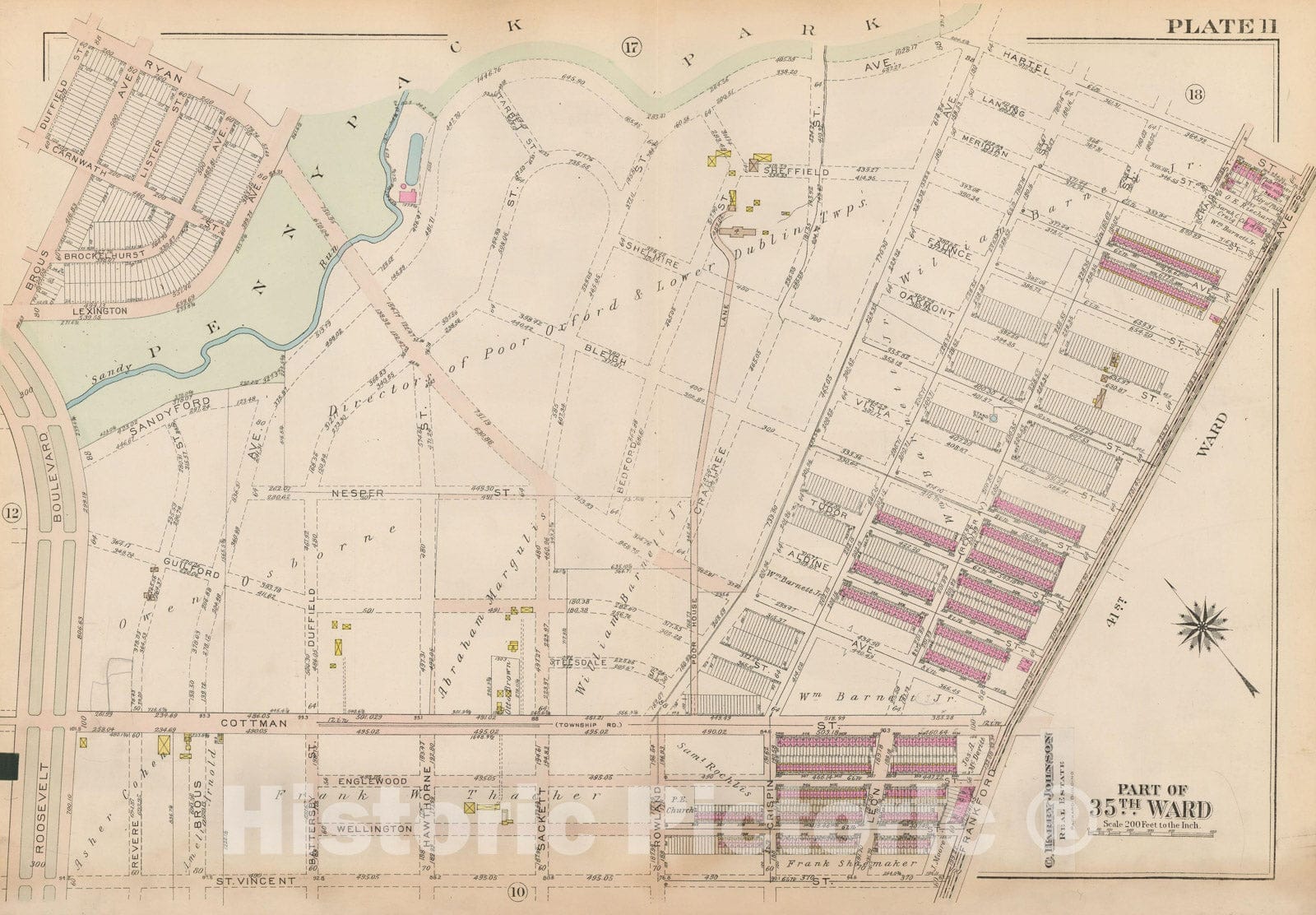 • .Historic Map : Atlas City of Philadelphia 35th Ward, Philadelphia 1927 Plate 011 , Vintage Wall Art