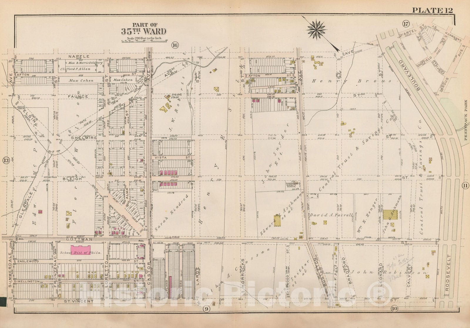 Historic Map : Atlas City of Philadelphia 35th Ward, Philadelphia 1927 Plate 012 , Vintage Wall Art