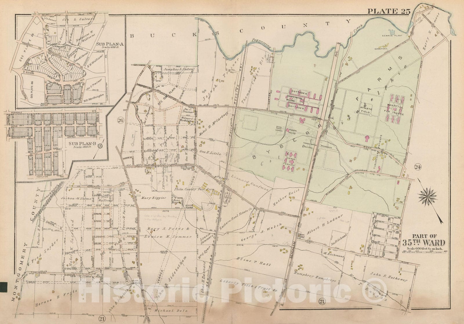 Historic Map : Atlas City of Philadelphia 35th Ward, Philadelphia 1927 Plate 025 , Vintage Wall Art