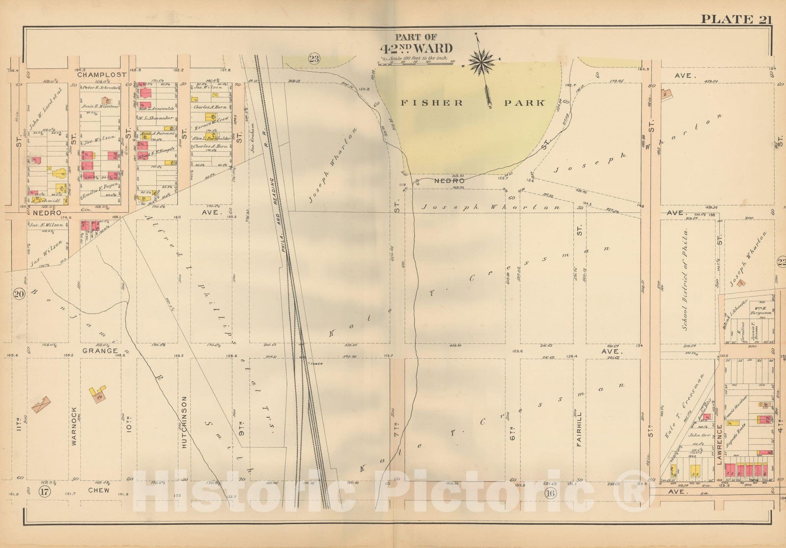 • .Historic Map : Atlas City of Philadelphia, 42nd Ward, Philadelphia 1913 Plate 021 , Vintage Wall Art