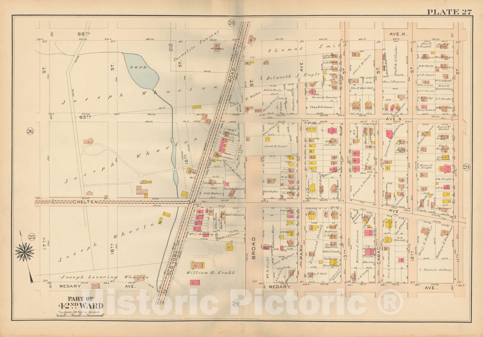 Historic Map : Atlas City of Philadelphia, 42nd Ward, Philadelphia 1913 Plate 027 , Vintage Wall Art
