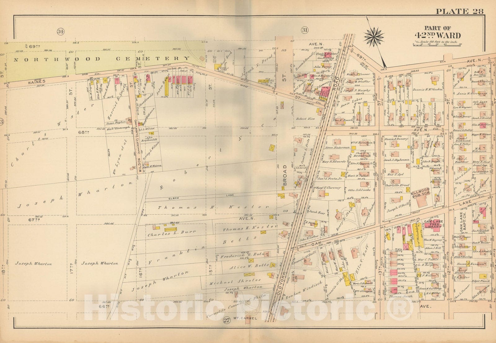Historic Map : Atlas City of Philadelphia, 42nd Ward, Philadelphia 1913 Plate 028 , Vintage Wall Art