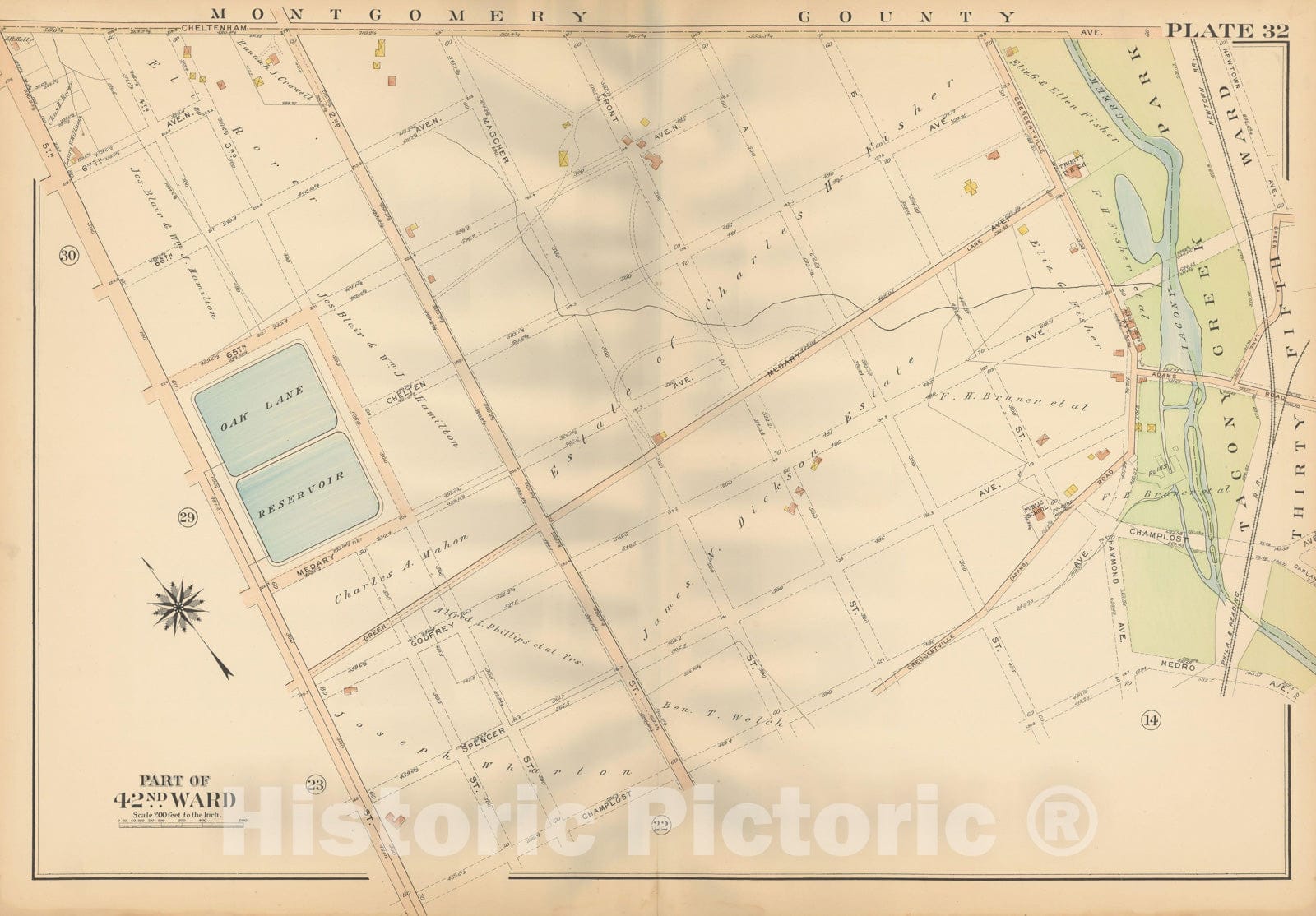 Historic Map : Atlas City of Philadelphia, 42nd Ward, Philadelphia 1913 Plate 032 , Vintage Wall Art