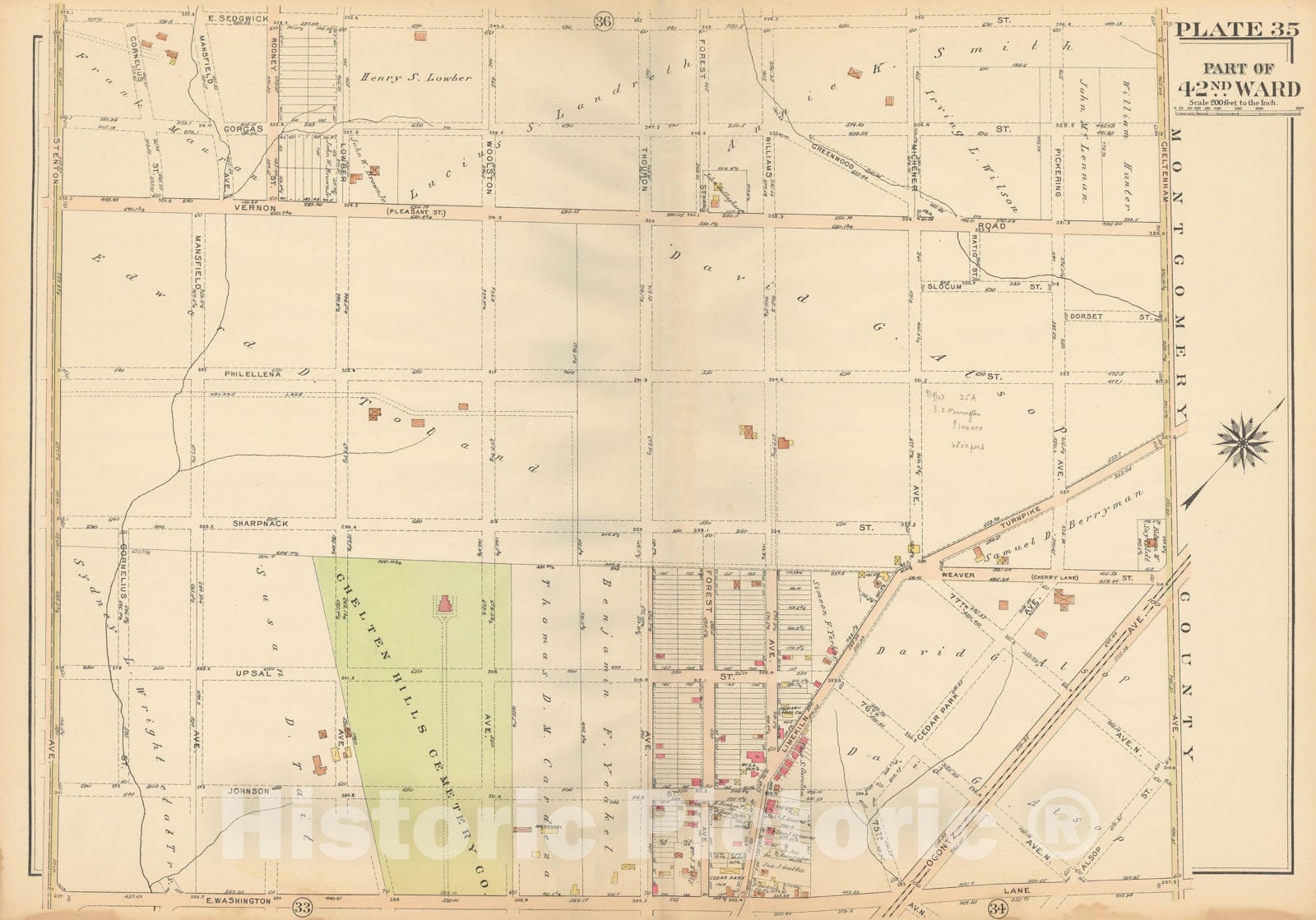• .Historic Map : Atlas City of Philadelphia, 42nd Ward, Philadelphia 1913 Plate 035 , Vintage Wall Art