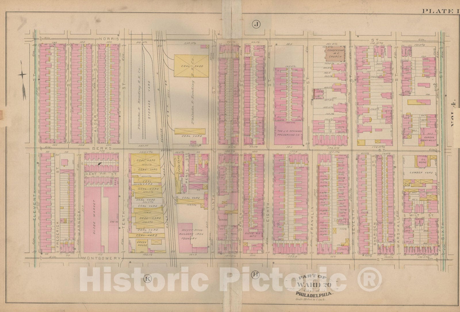 • .Historic Map : Atlas City of Philadelphia, Vol. 3, Philadelphia 1886 Plate I , Vintage Wall Art