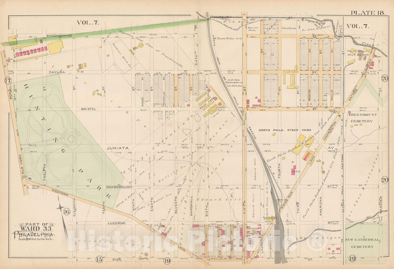 Historic Map : Atlas City of Philadelphia Volume 9 25th and 33rd Wards, Philadelphia 1891 Plate 018 , Vintage Wall Art