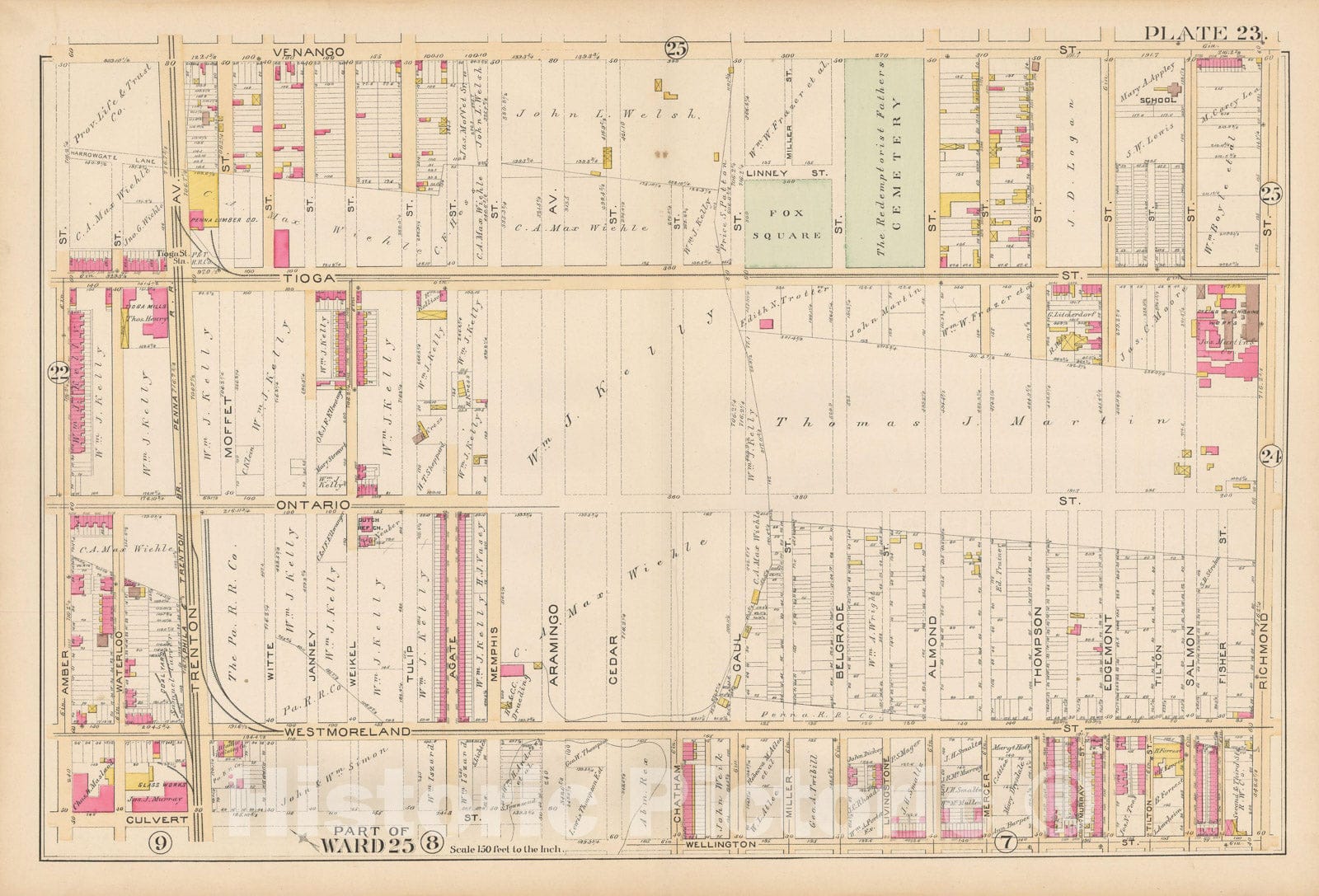 • Historic Map : Atlas City of Philadelphia Volume 9 25th and 33rd Wards, Philadelphia 1891 Plate 023 , Vintage Wall Art
