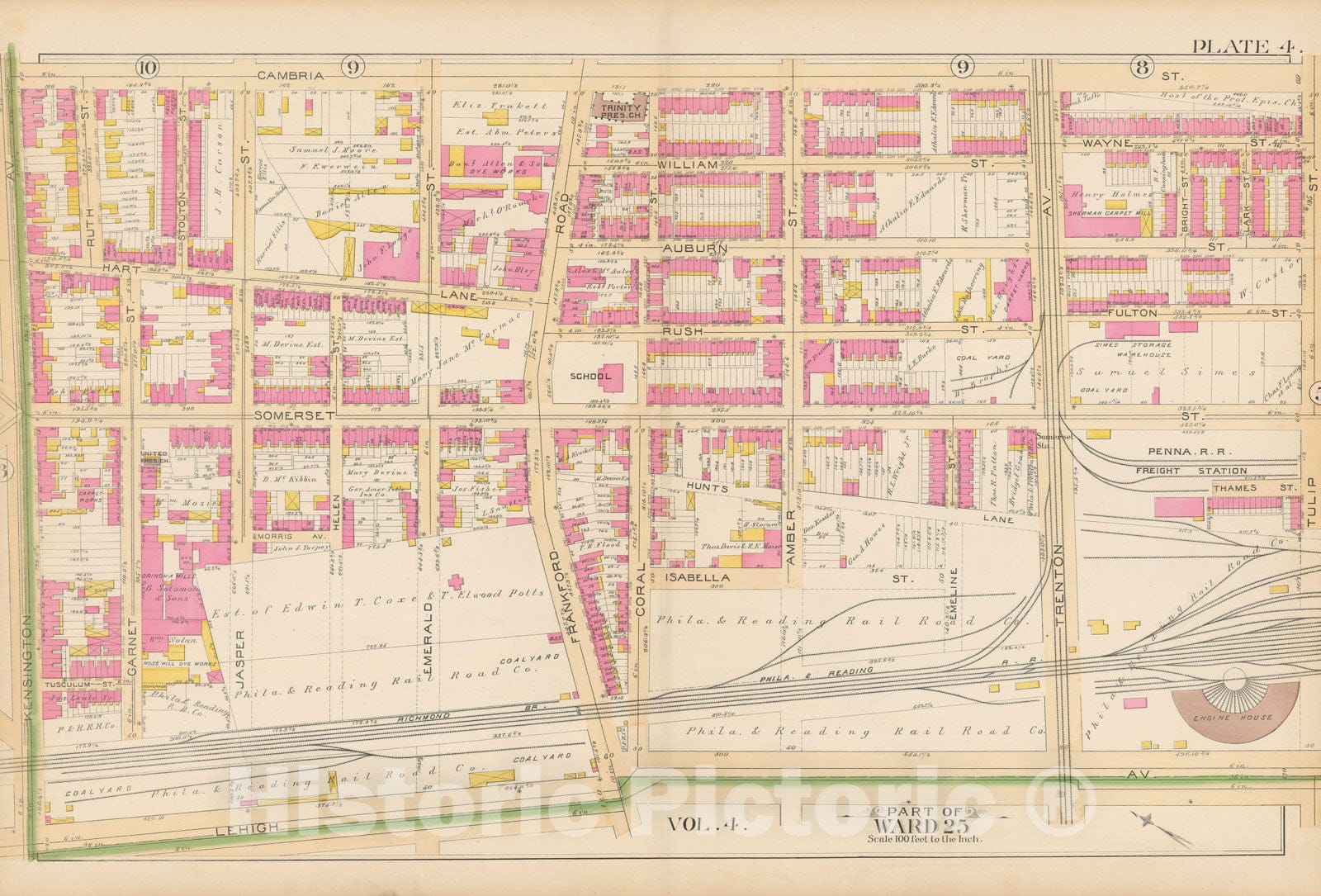 Historic Map : Atlas City of Philadelphia Volume 9 25th and 33rd Wards, Philadelphia 1891 Plate 004 , Vintage Wall Art