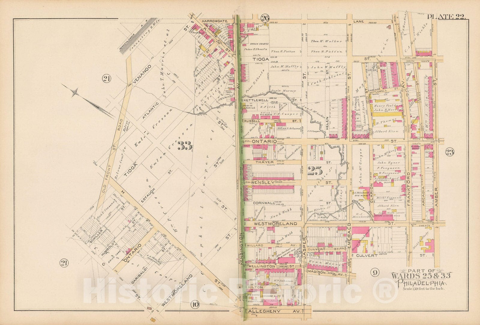 Historic Map : Atlas City of Philadelphia Volume 9 25th and 33rd Wards, Philadelphia 1891 Plate 022 , Vintage Wall Art