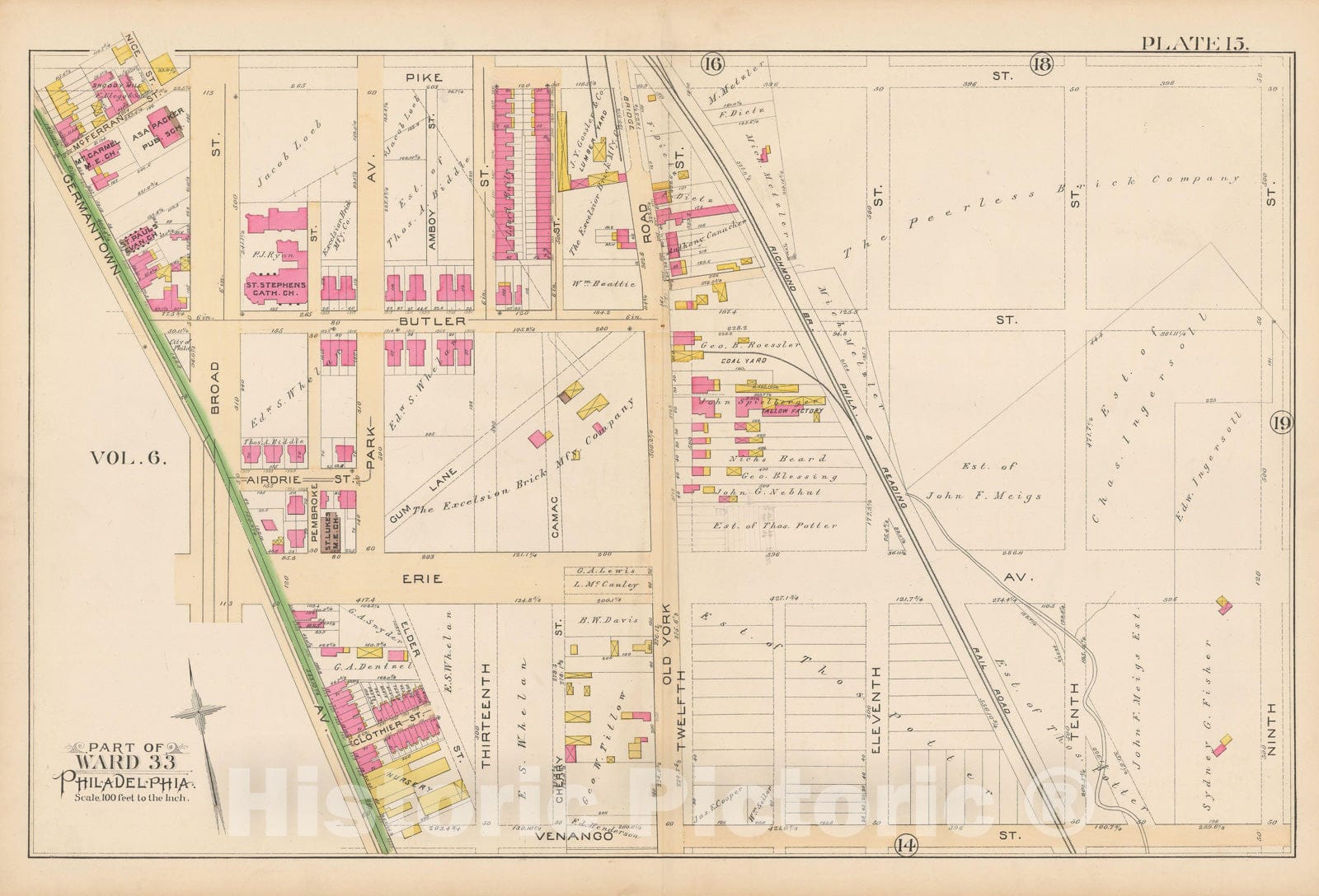 Historic Map : Atlas City of Philadelphia Volume 9 25th and 33rd Wards, Philadelphia 1891 Plate 015 , Vintage Wall Art