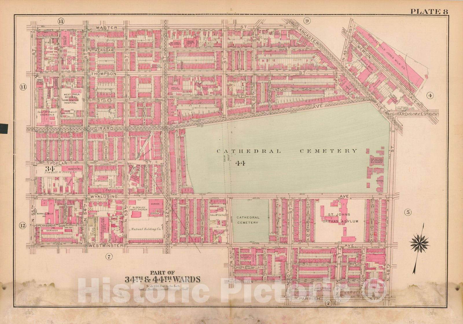 Historic Map : Atlas City of Philadelphia Wards 24,27,34,40,44&46 West Philadelphia, West Philadelphia 1927 Plate 008 , Vintage Wall Art