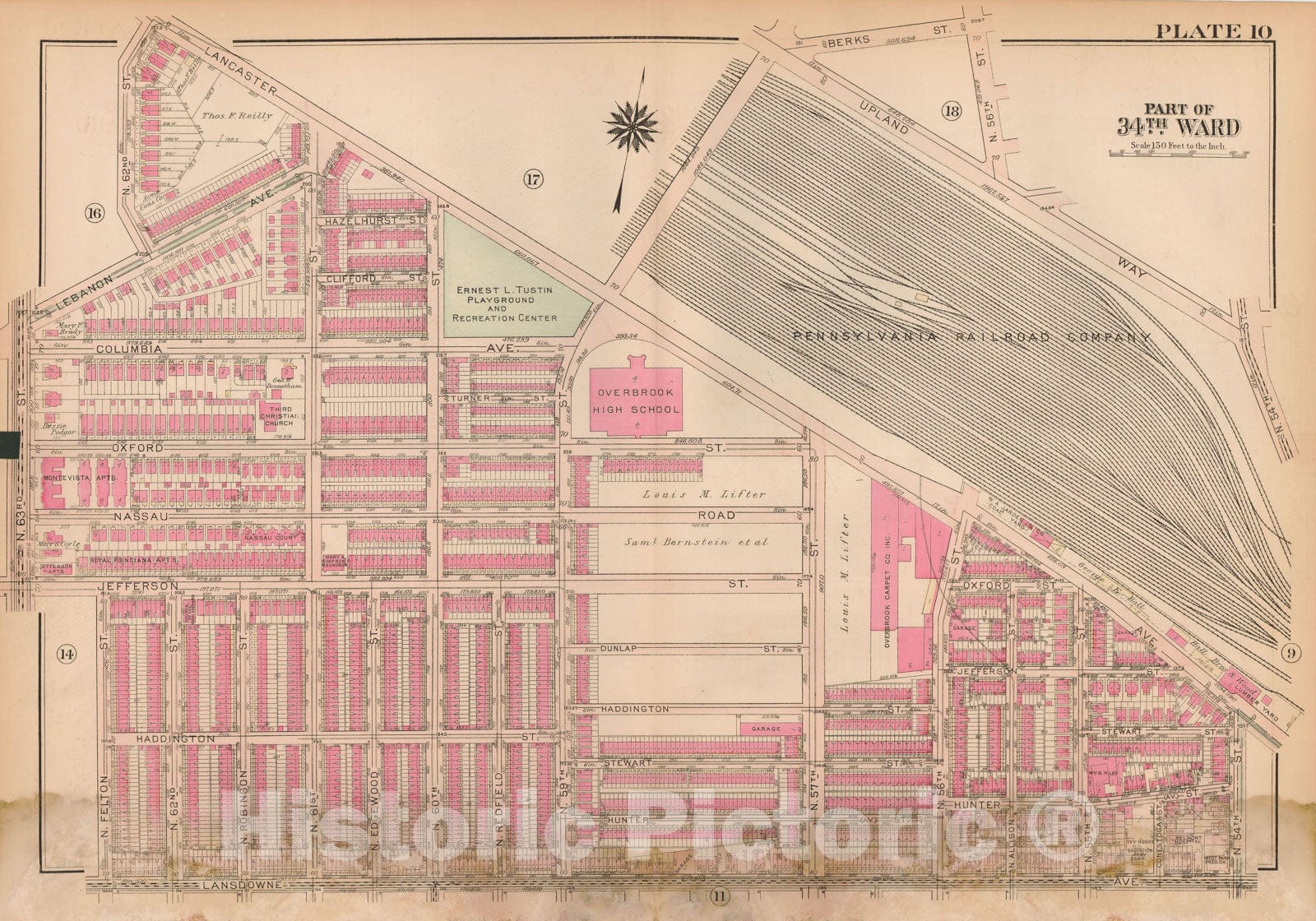 Historic Map : Atlas City of Philadelphia Wards 24,27,34,40,44&46 West Philadelphia, West Philadelphia 1927 Plate 010 , Vintage Wall Art