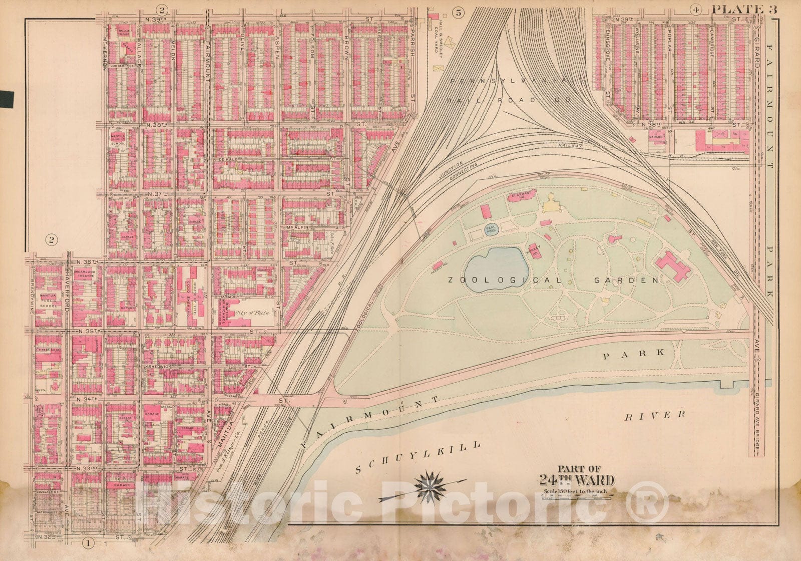 Historic Map : Atlas City of Philadelphia Wards 24,27,34,40,44&46 West Philadelphia, West Philadelphia 1927 Plate 003 , Vintage Wall Art